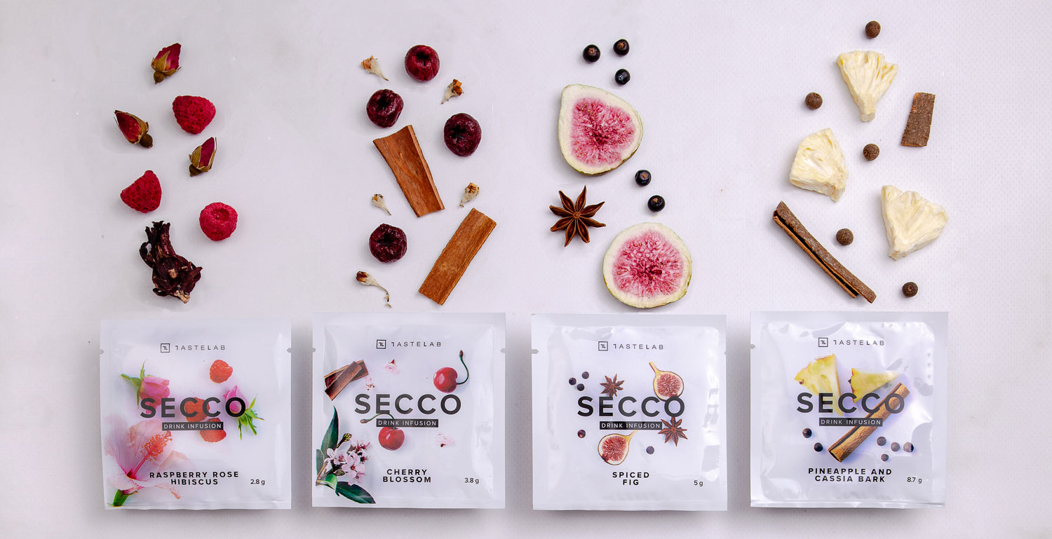 Secco is a collection of specially chosen all-natural fruits, spices, and flowers that when added to your drink of choice infuse to release flavor, natural coloring, and a light aroma. Add Secco to your cocktail, mocktail, water, or soft drink to make your experiences more enjoyable!